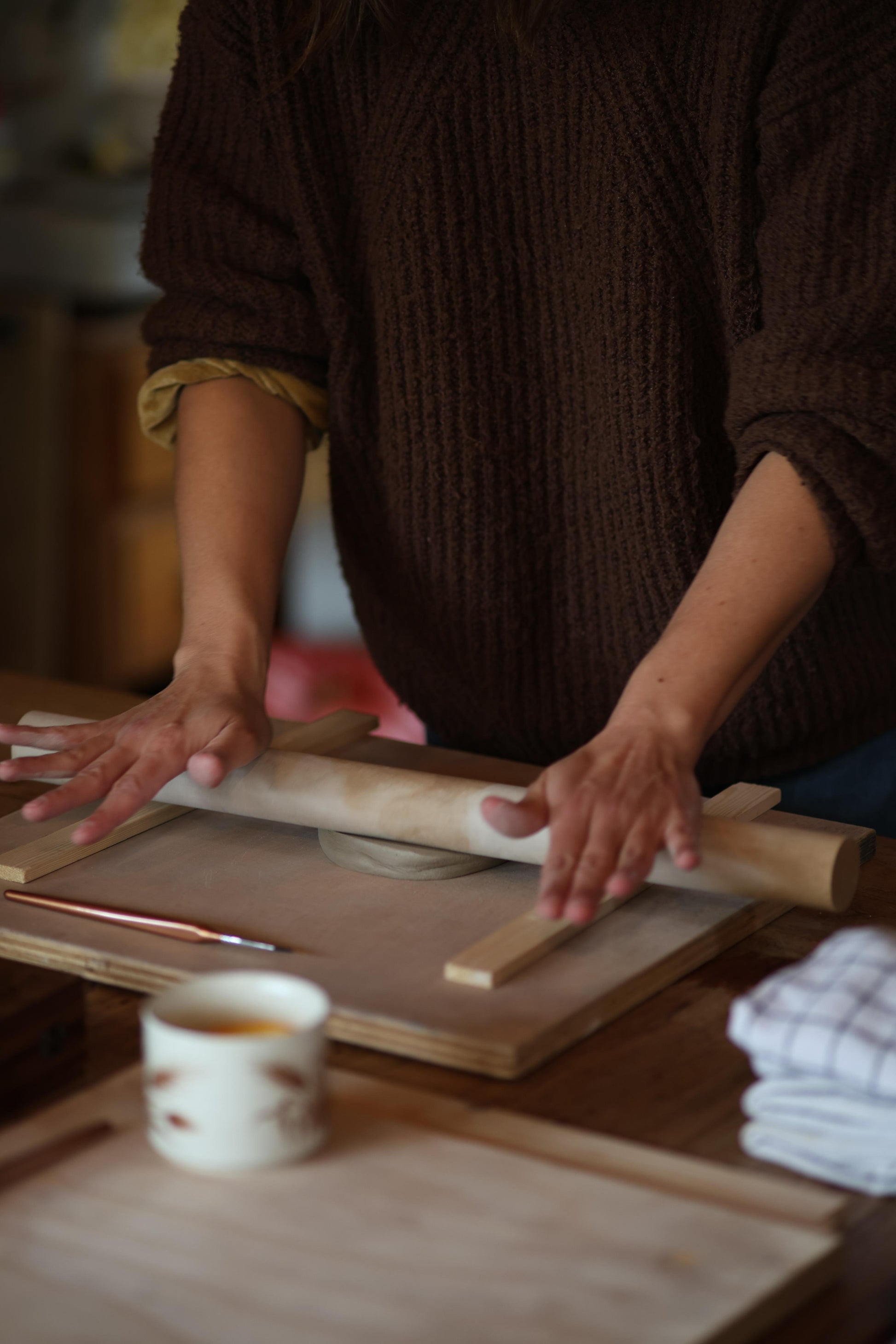 Werken met keramiek is kwetsbaar, hoewel we uiterst zorgvuldig te werk gaan is er een risico dat het werk tijdens het proces breekt. Draag het liefst kleding die ook vies mag worden. Om de klei goed te kunnen vormen werk je het liefst met korte nagels.